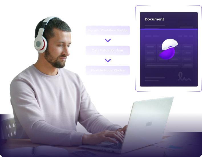 Create AI-powered workflows or start from templates guided by our AI agent. Combine document extraction, validation, and automation. All without code.